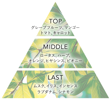 爽やかでみずみずしいフレッシュジューシーな香りが自由な精神を呼び覚まします。